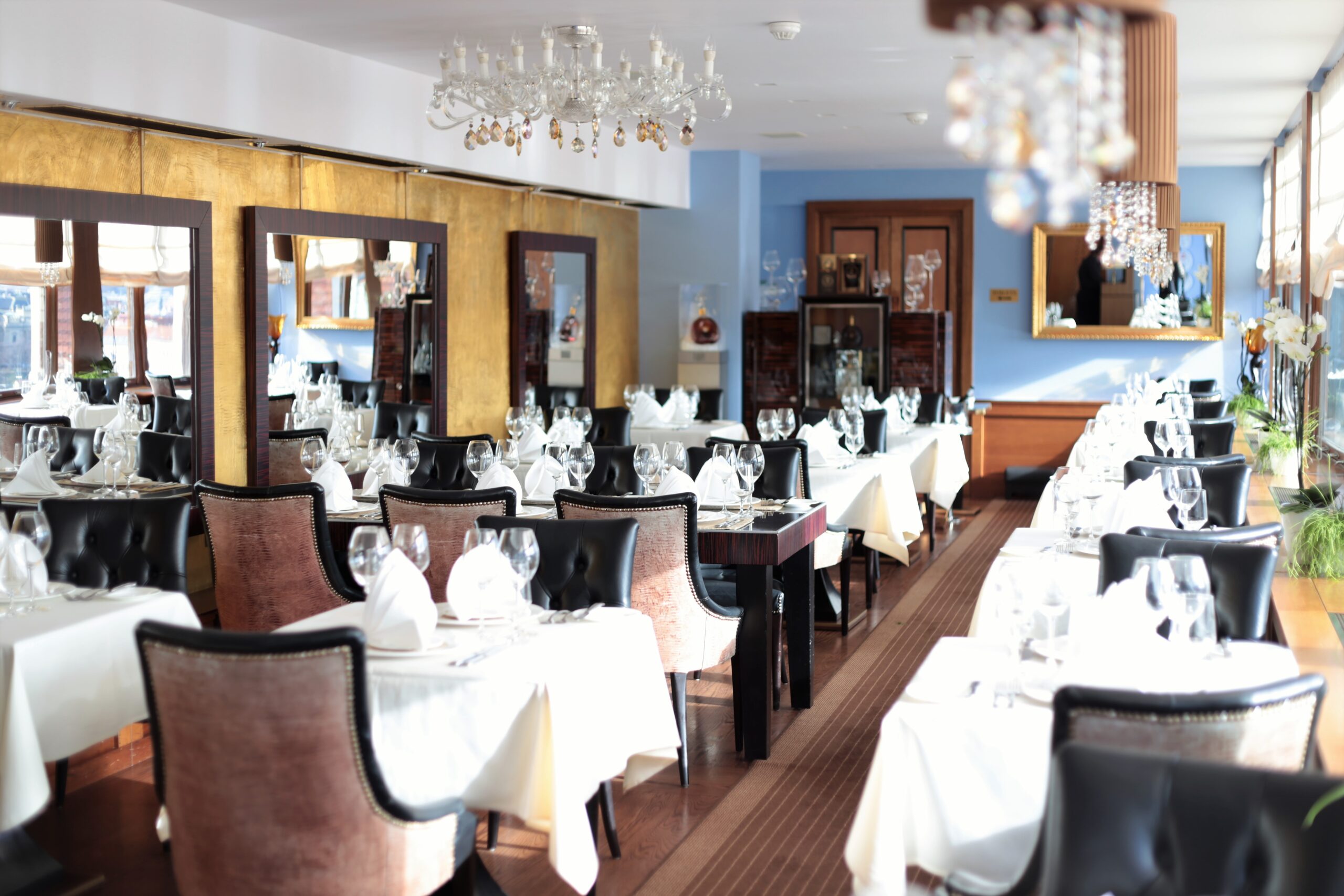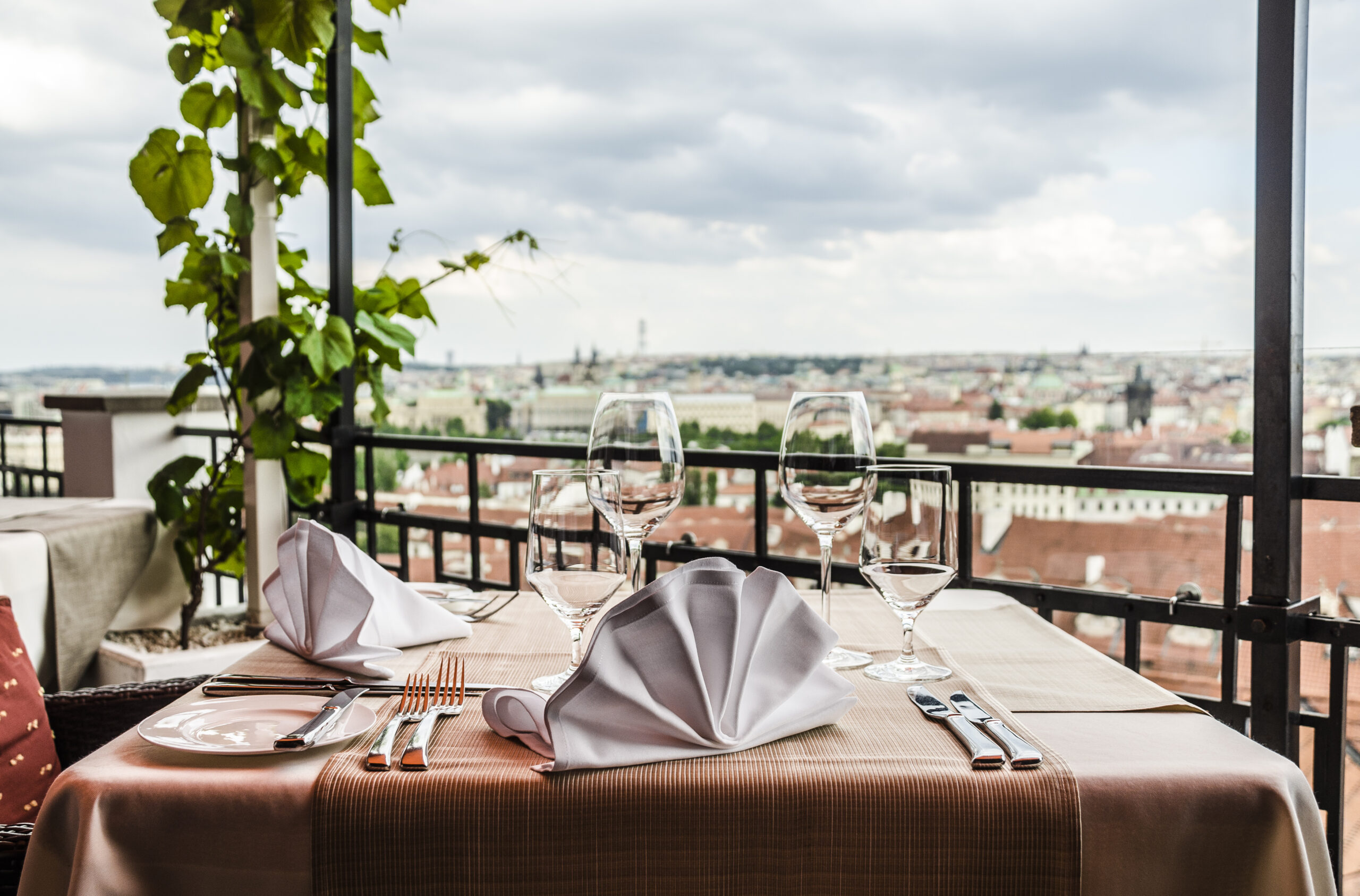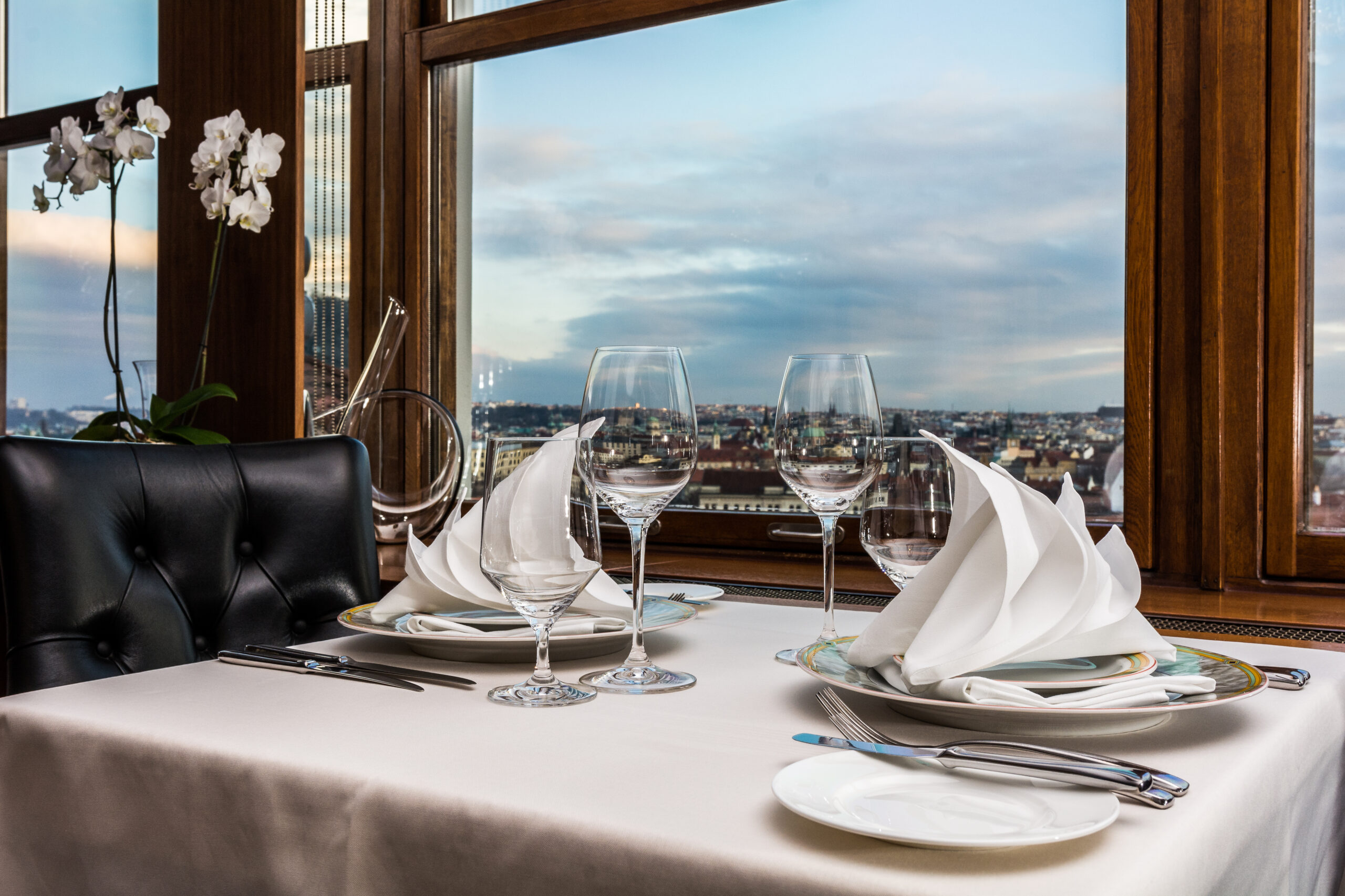 One of the restaurant’s highlights is its beautiful rooftop terrace, widely considered one of the most romantic dining locations in Prague. During warmer months, guests can enjoy lunch or dinner outdoors while watching the sunset over the city. The indoor dining room offers the same elegant ambiance with large windows overlooking the historic center.